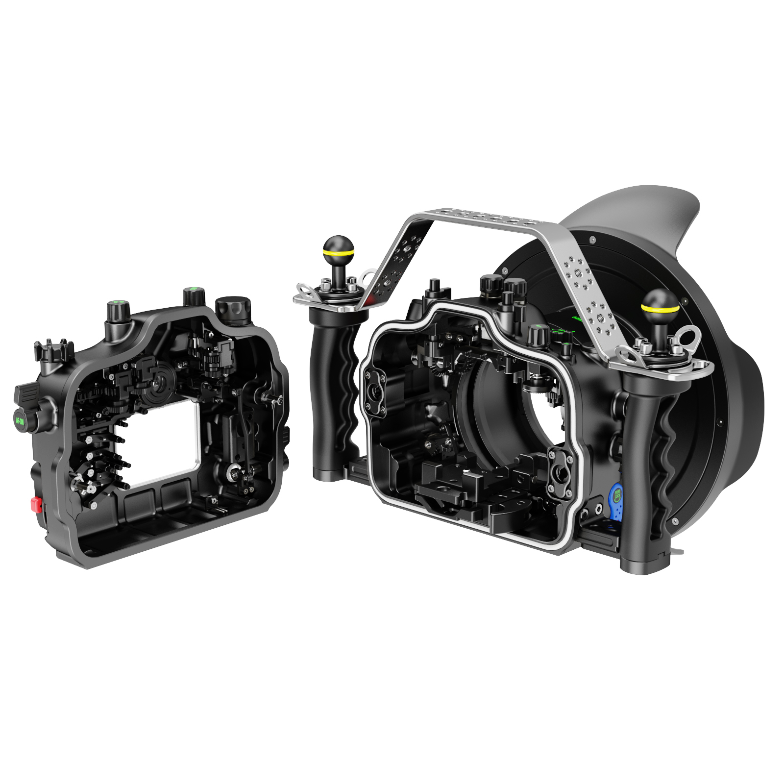 一つの耐腐食アルミ合金ブロックからを削り上げることにより、水深100m/328FTまでの水圧を耐えることができます。水圧による変形が少ないため、深い深度でもカメラをスムーズに操作できます。